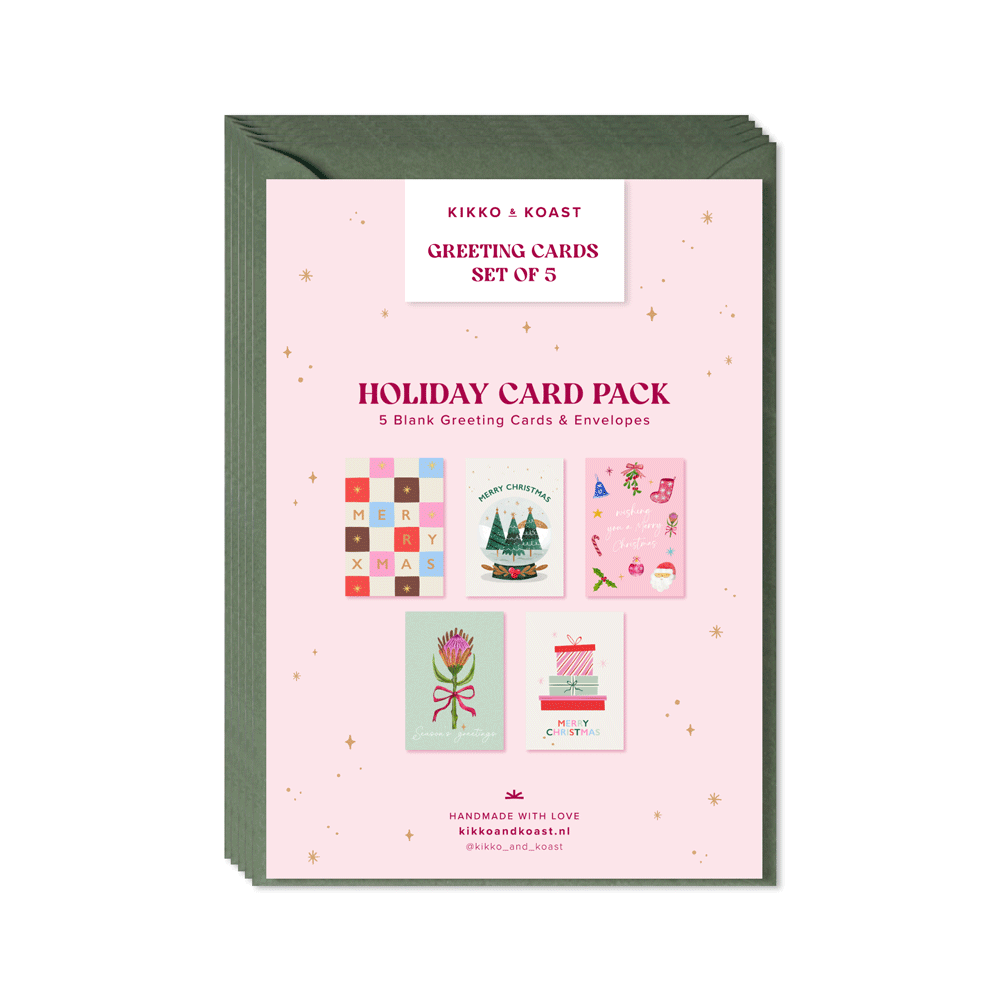 Celebrate the season with style using this elegant holiday card pack from Kikko&Koast. Each set includes five beautifully designed blank festive cards paired with matching envelopes, giving you the perfect canvas to share personalized Christmas wishes. Whether you're sending greetings to loved ones or adding a thoughtful touch to gifts, these versatile cards combine quality craftsmanship with contemporary design. Ideal for anyone who values meaningful, handwritten communication during the festive period.